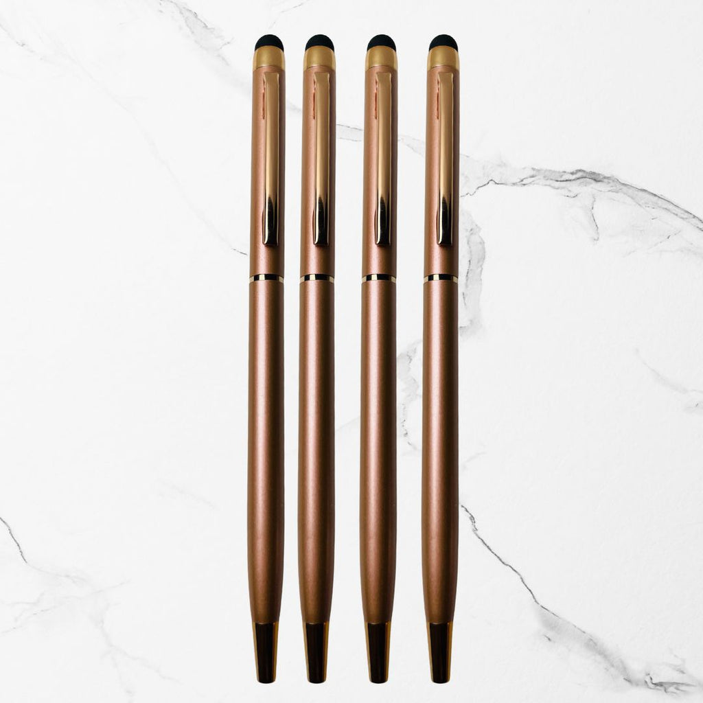 BallPen Bazaar presents a luxurious pack of 4 stylus rose gold ball pens designed to elevate your writing experience with style and comfort. Each pen features a stunning metallic glossy body paired with a premium rose gold clip, giving it a sophisticated and modern look suitable for office professionals, students, business owners, and anyone who appreciates fine stationery.