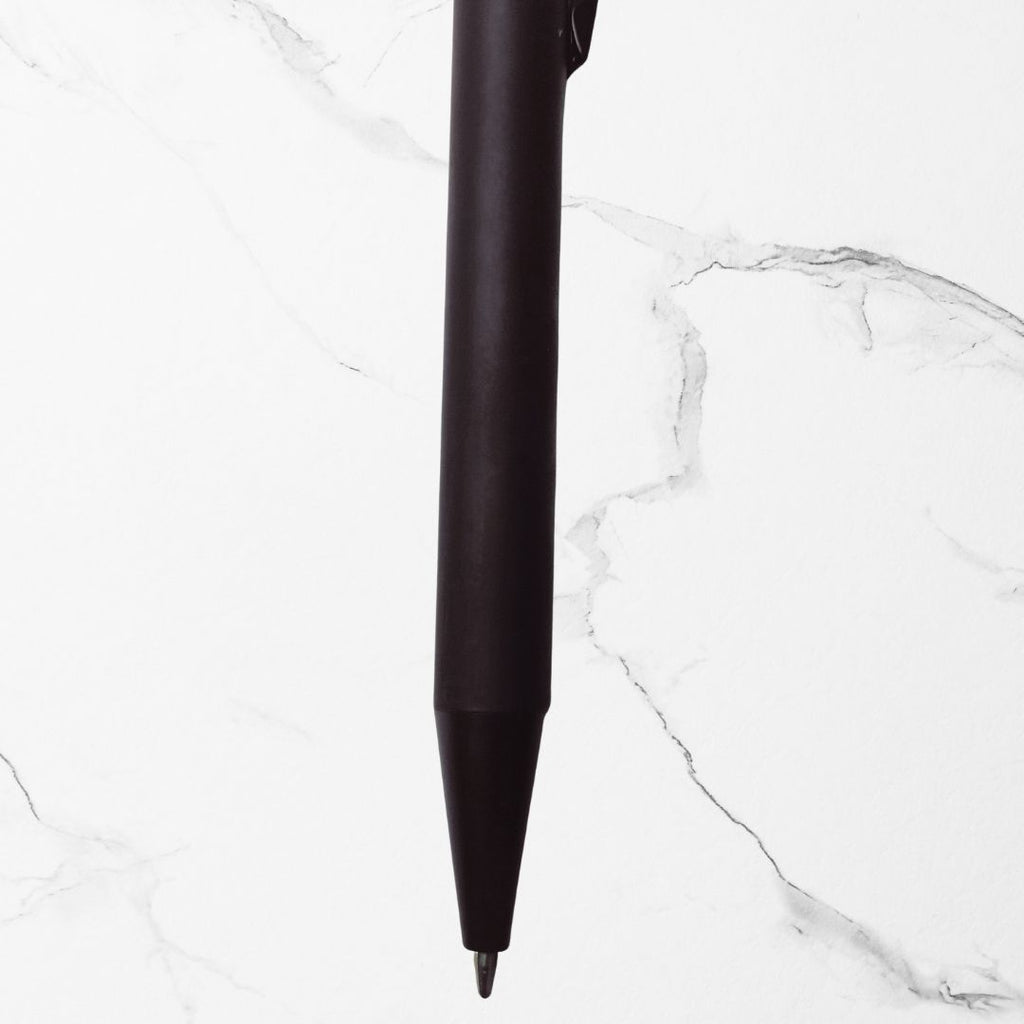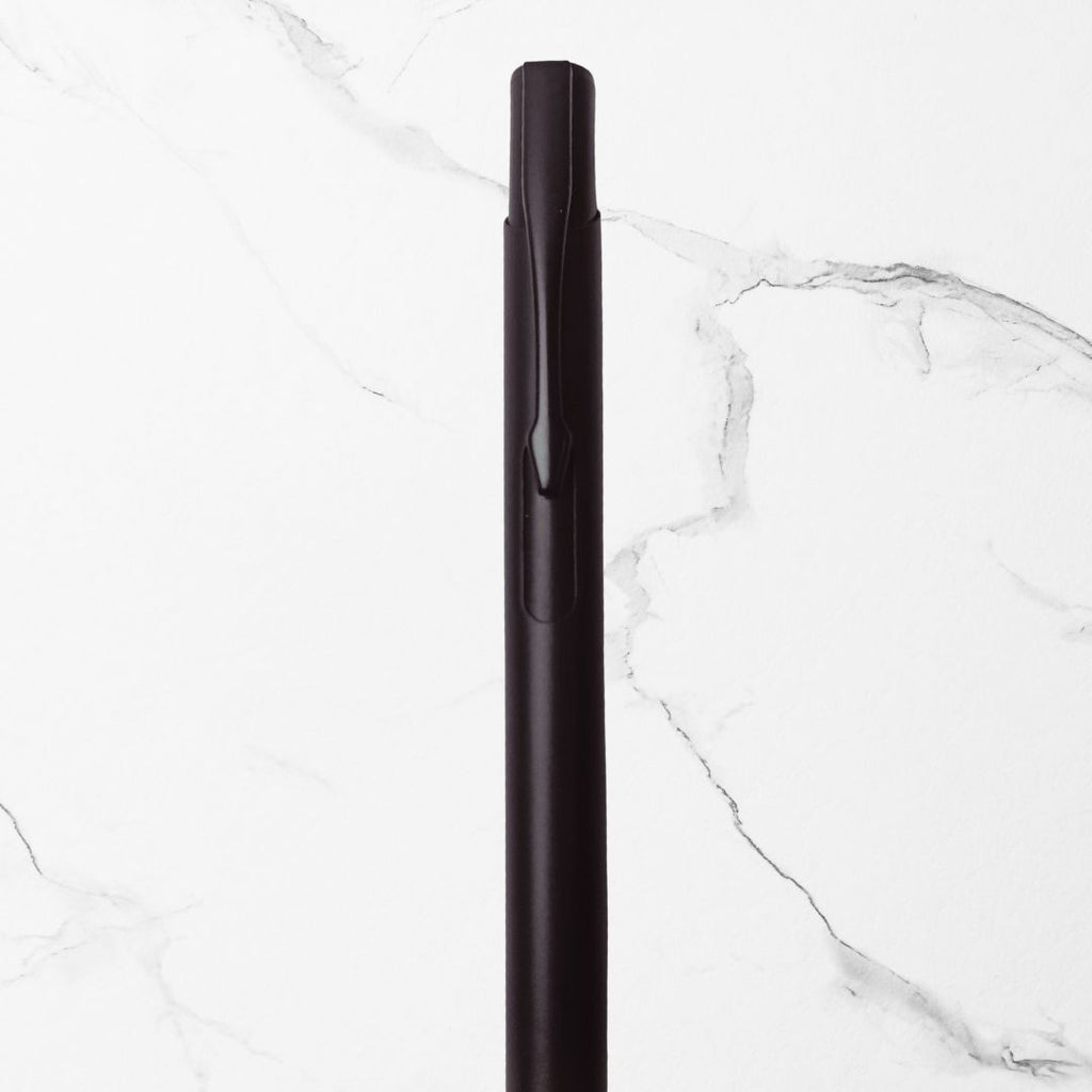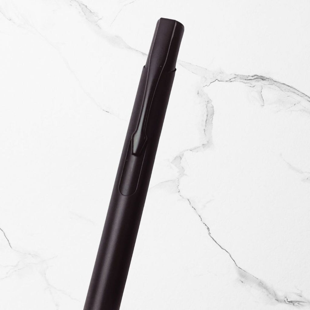 A matte black body with a black clip creates a timeless, premium aesthetic suitable for any workspace or pocket.