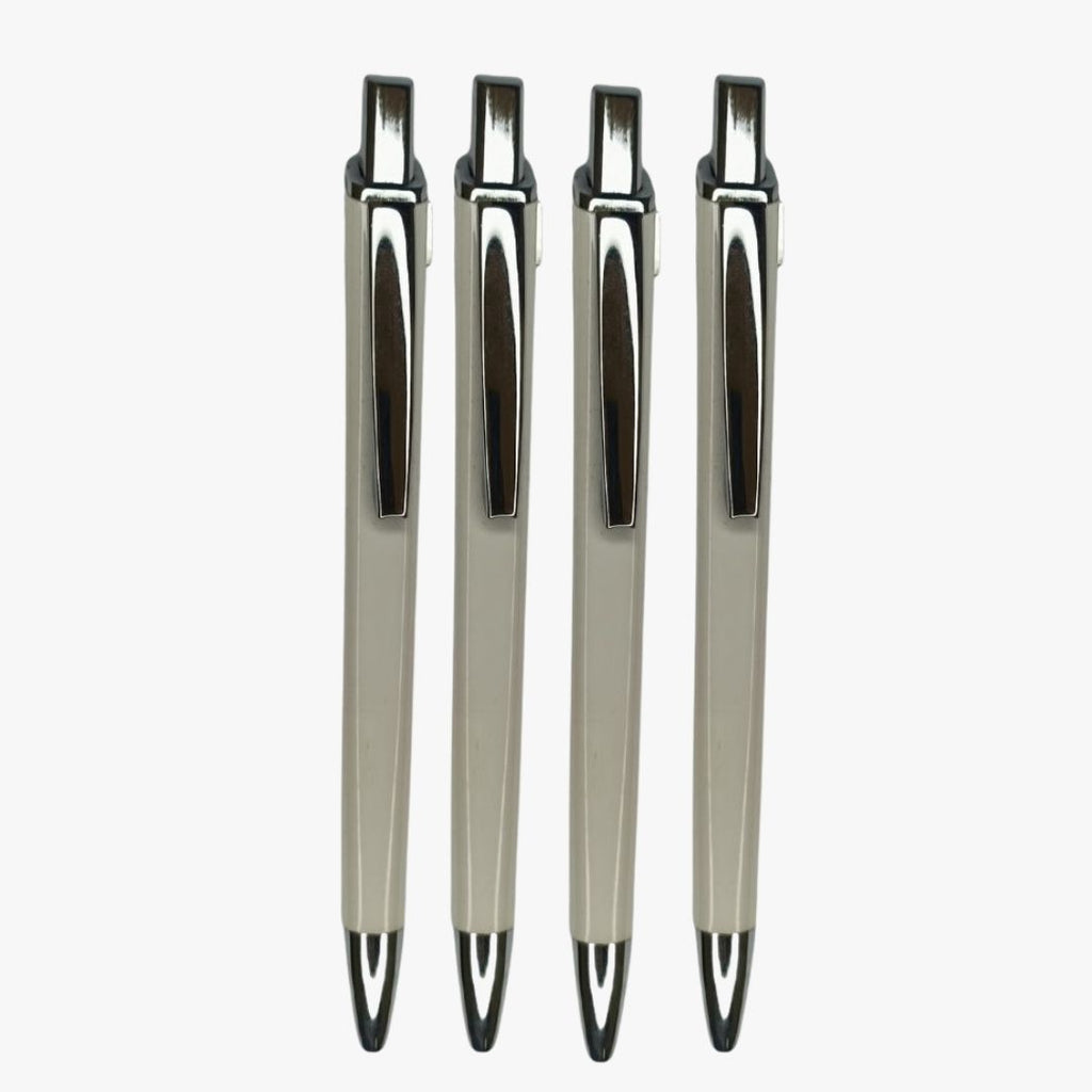 Elevate your everyday writing experience with this premium Set of 4 Plastic White Colour Body Ball Pens featuring a stylish silver clip and smooth click mechanism. Designed for comfort and reliability, these pens are perfect for students, professionals, and anyone who values effortless writing.