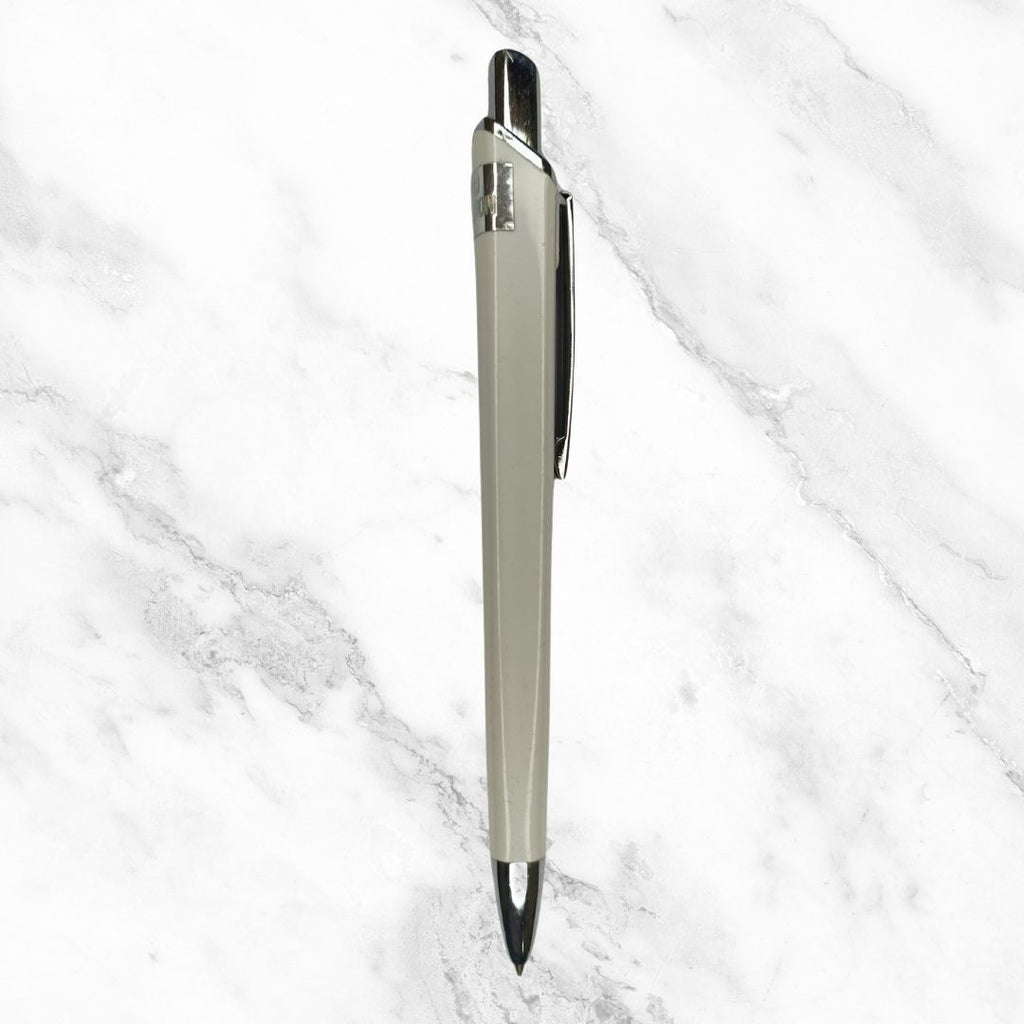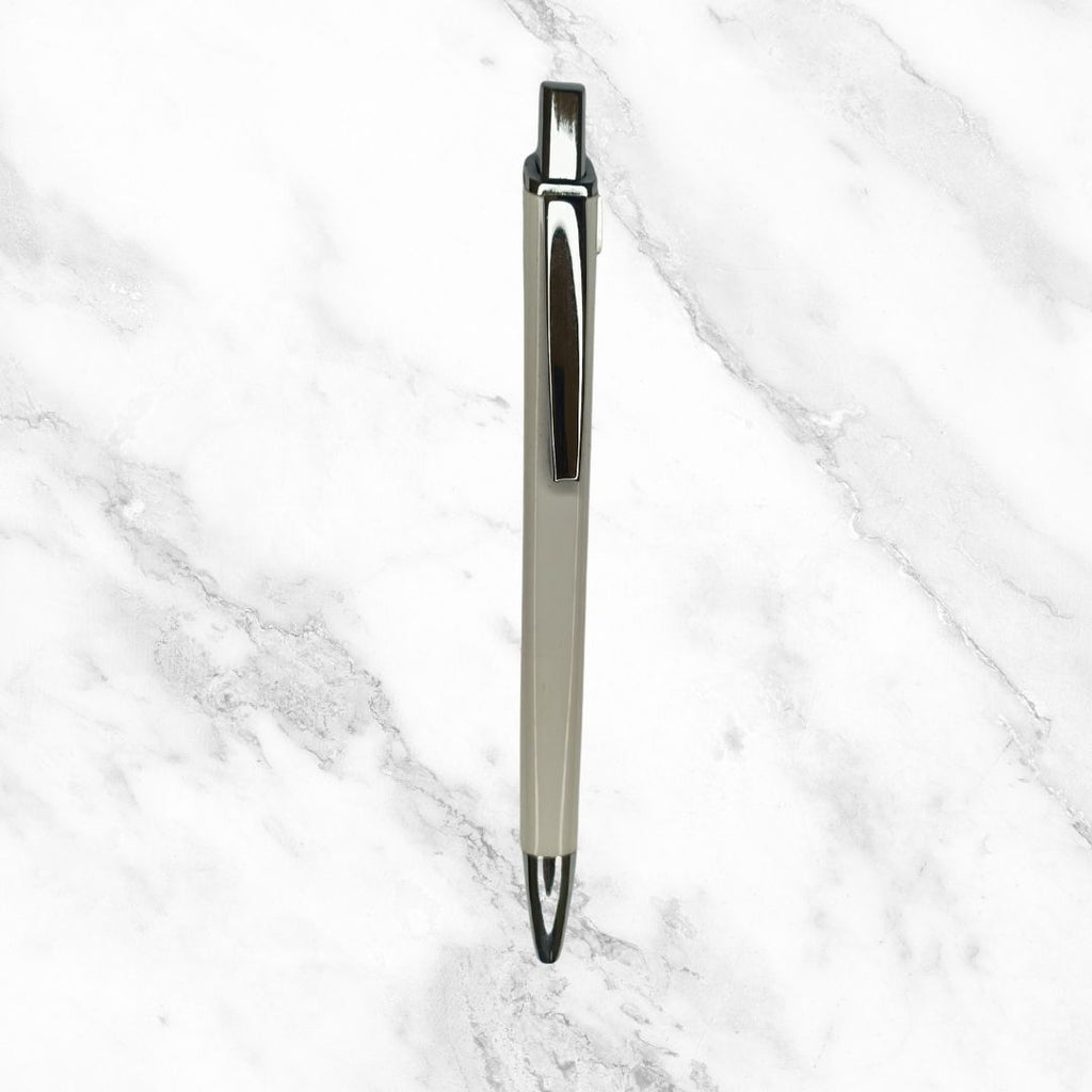Each pen is crafted with a durable plastic body in an elegant white finish, complemented by a sleek silver clip that adds a touch of sophistication. The click mechanism ensures quick access, making it ideal for fast-paced note-taking, office use, or personal journaling.