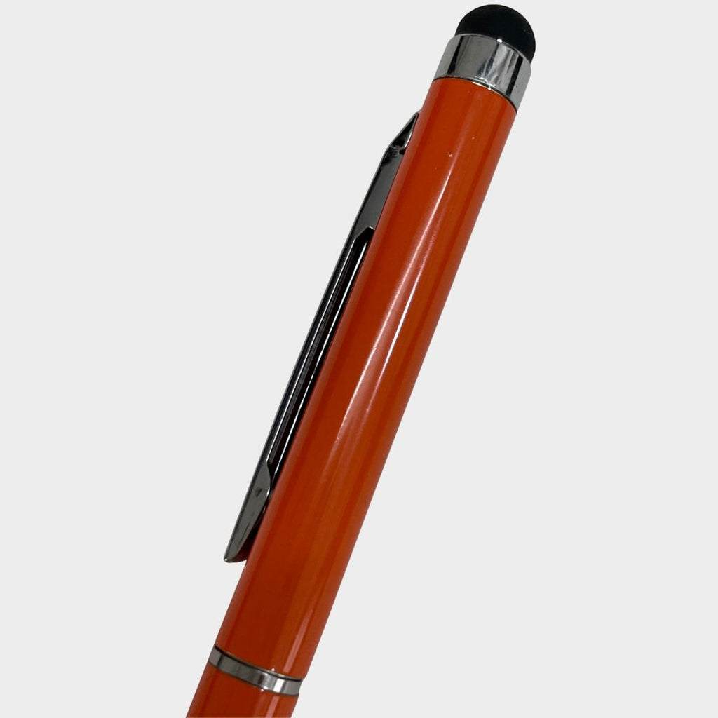 Add a pop of style to your stationery with this Glossy Orange Color Stylus Ball Pen Set. Designed with a vibrant orange metallic body and a stylus tip for touchscreen use, this pen combines fashion and function in one elegant tool.