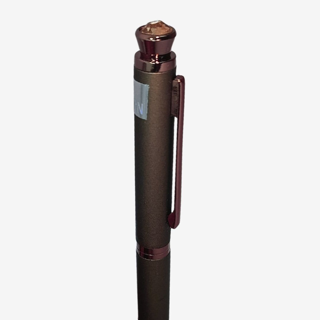 The glossy brown metallic finish exudes sophistication, making it ideal for business meetings, gifting, or personal use. The striking diamond on top not only enhances its luxurious appeal but also reflects elegance with every glance. Equipped with blue ink, the pen delivers smooth, consistent, and smudge-free writing for everyday tasks or important signatures.