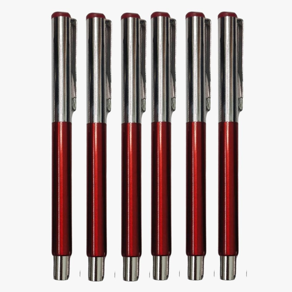 Elevate your writing experience with this Set of 6 Metallic Glossy Red Colour Body Ball Pens featuring a refined silver colour cap and a durable openable mechanism. Designed for style, comfort, and performance, these pens combine a bold glossy red finish with a sleek metallic shine, making them perfect for professionals, students, and gift purposes.