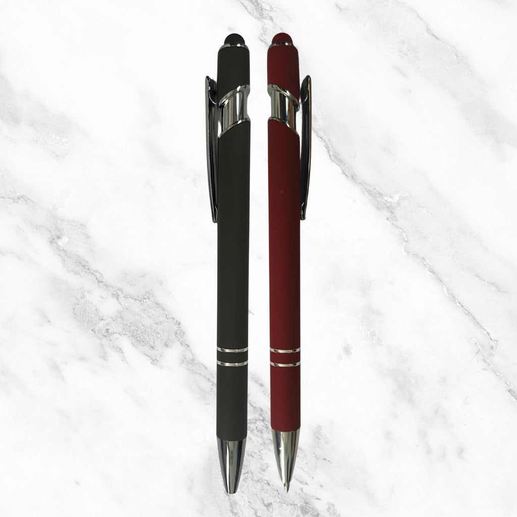 Upgrade your everyday writing with this elegant Set of 2 Stylus Ball Pens featuring Matt Red and Gray Bodies paired with sleek Silver Accents. Designed for both style and function, each pen is equipped with a click mechanism for quick use and a mobile touch stylus tip for seamless interaction with touchscreens. Whether you're signing documents or navigating your smartphone, these pens deliver a smooth and responsive experience with their blue ink cartridges. Perfect for gifting, office use, or daily note-taking, this premium pen set blends modern aesthetics with smart utility.
