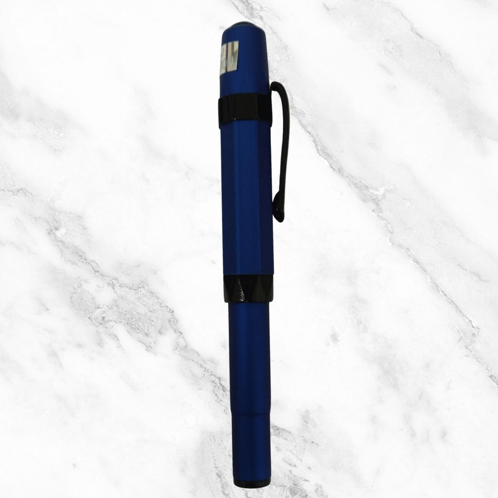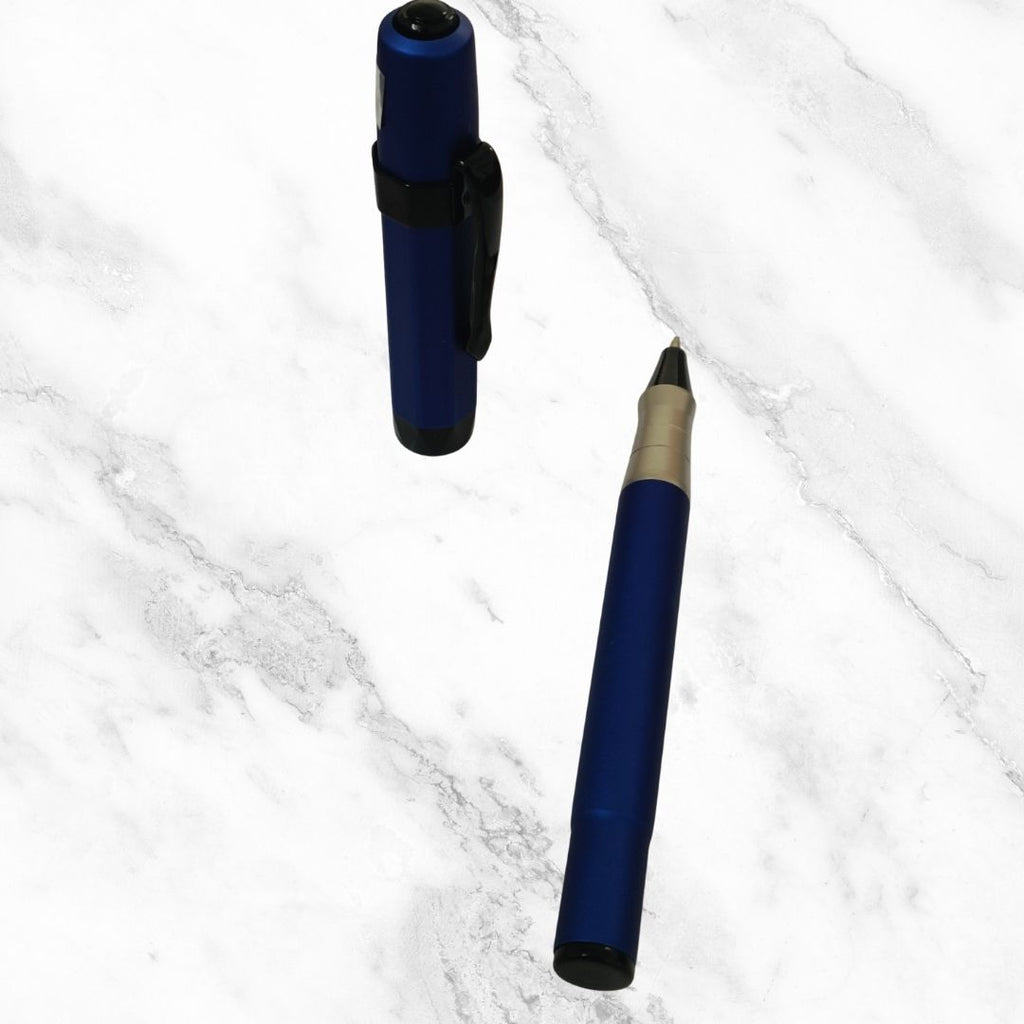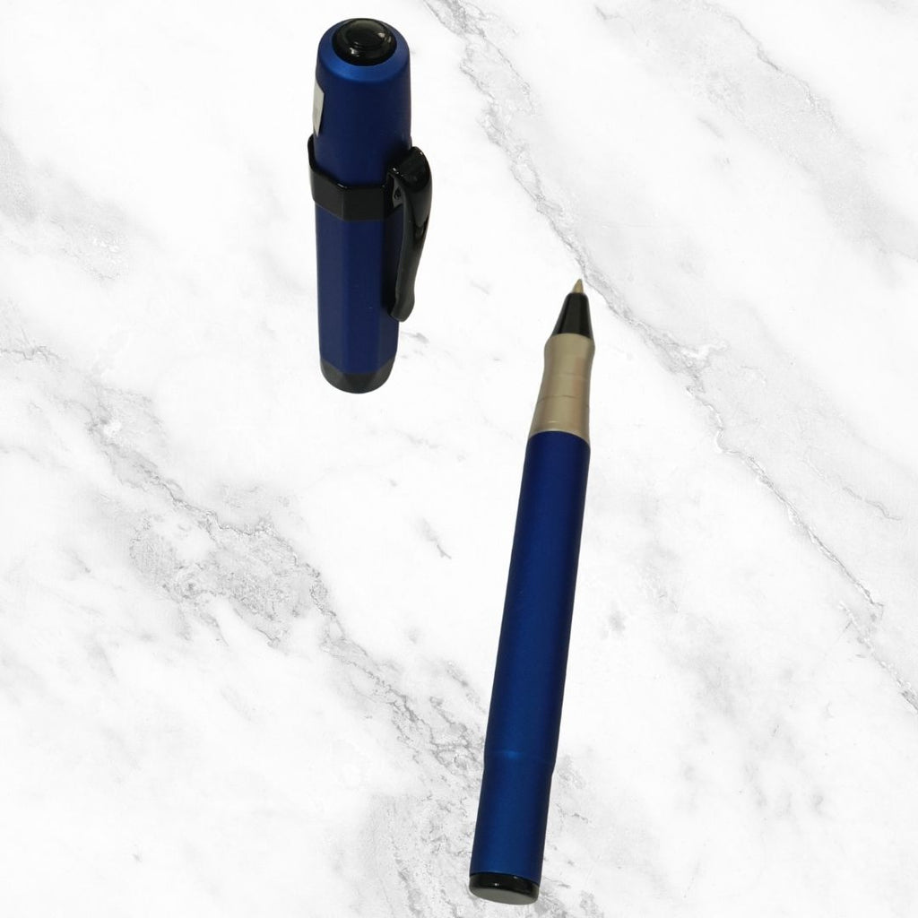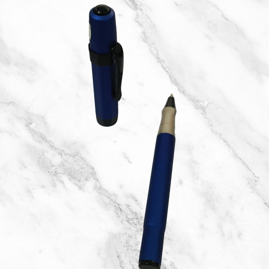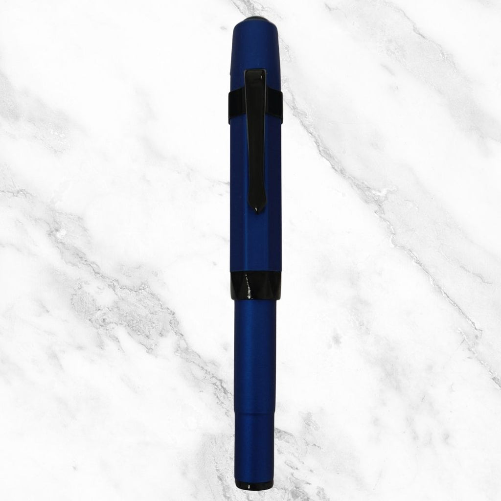 A minimalist matte blue body paired with a sleek black clip creates a bold, professional look suitable for all settings. -