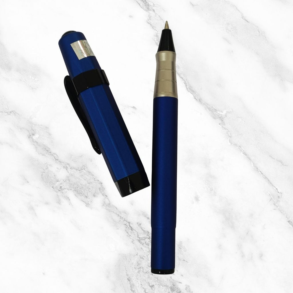 Designed for professionals, students, and gift-givers who value elegance, this pen boasts a rich matte blue body, a bold black clip, and a magnetic cap mechanism that ensures both convenience and a satisfying click every time.