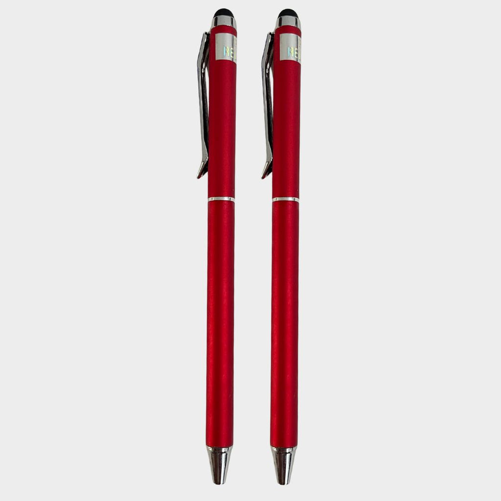 The Combo of 2 Red Stylus Twist Ball Pens brings a bold look and dual functionality into your daily routine. Designed with a glossy metallic red body and silver detailing, each pen includes a stylus tip for touchscreen use and a twist mechanism for smooth ink flow.