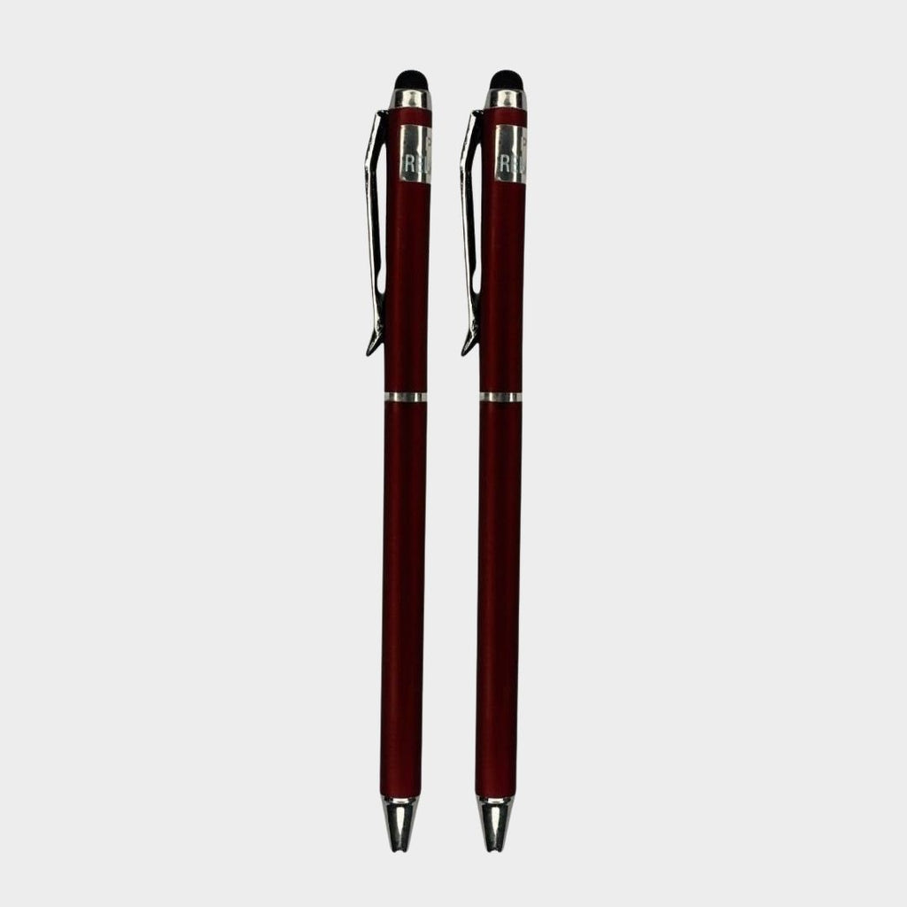 Combo of 2 Maroon Stylus Twist Ball Pens – Glossy Finish | Twist Mechanism | 0.6mm Blue Ink | Mobile Compatible