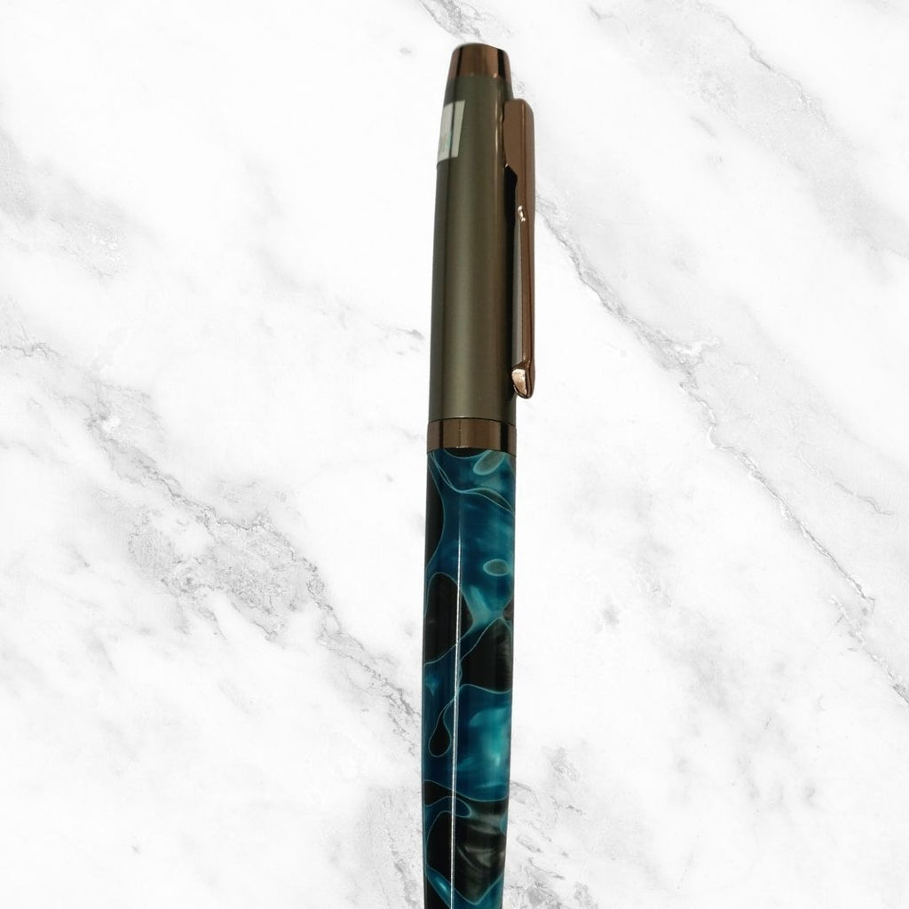 Order your Gunmetal and Designer Blue Ball Pen – Twist Mechanism | Smooth Writing with Glycer 0.6mm Blue Ink today from BallPenBazaar.in. Write with unmatched style, precision, and elegance.