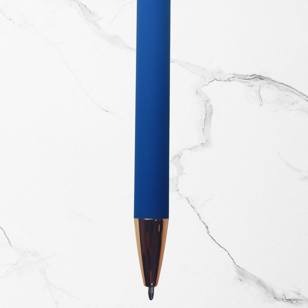 All pens feature a premium rose gold clip and smooth blue ink